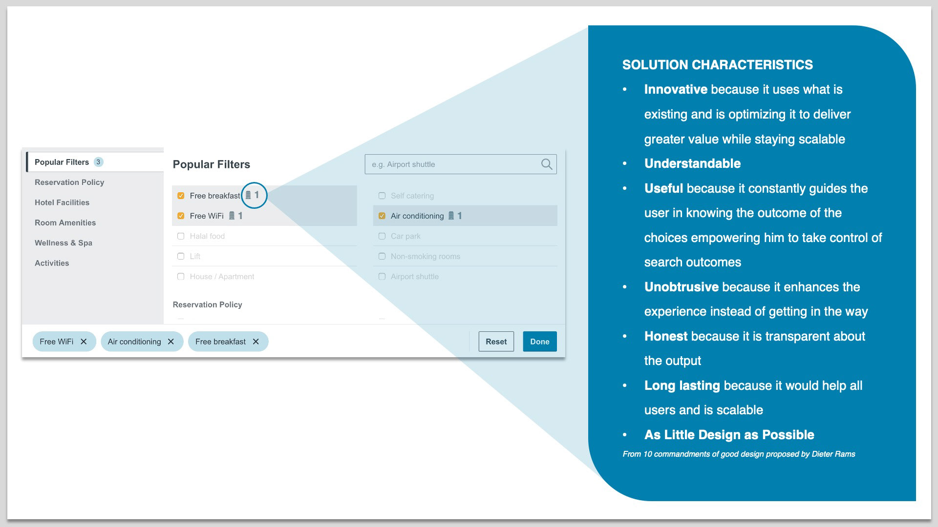 Ability to see number of hotels available as he keeps selecting the preferences helped him to discount preferences on the go