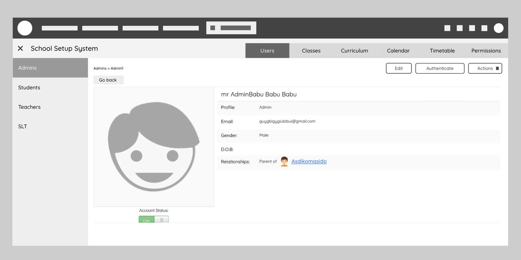 User flow for admin to manage different user types